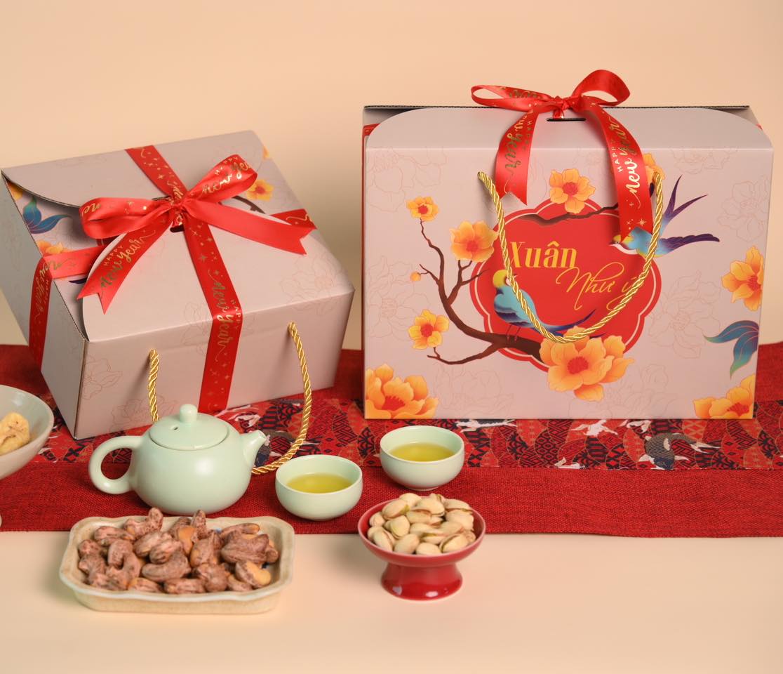 - Hộp cứng cao cấp có in ấn thương hiệu: Dành cho quà biếu, tặng trong các dịp lễ Tết, hội nghị.